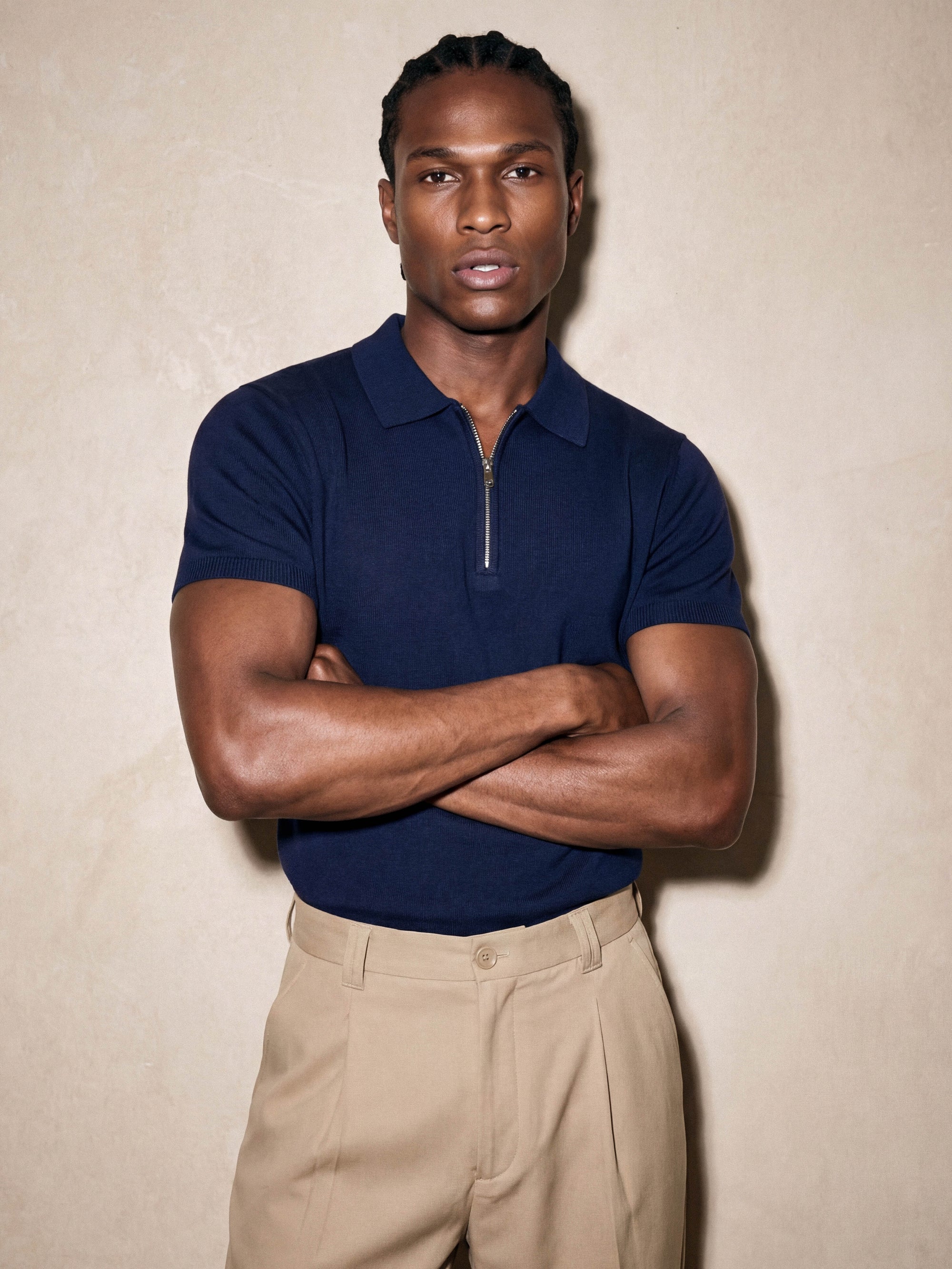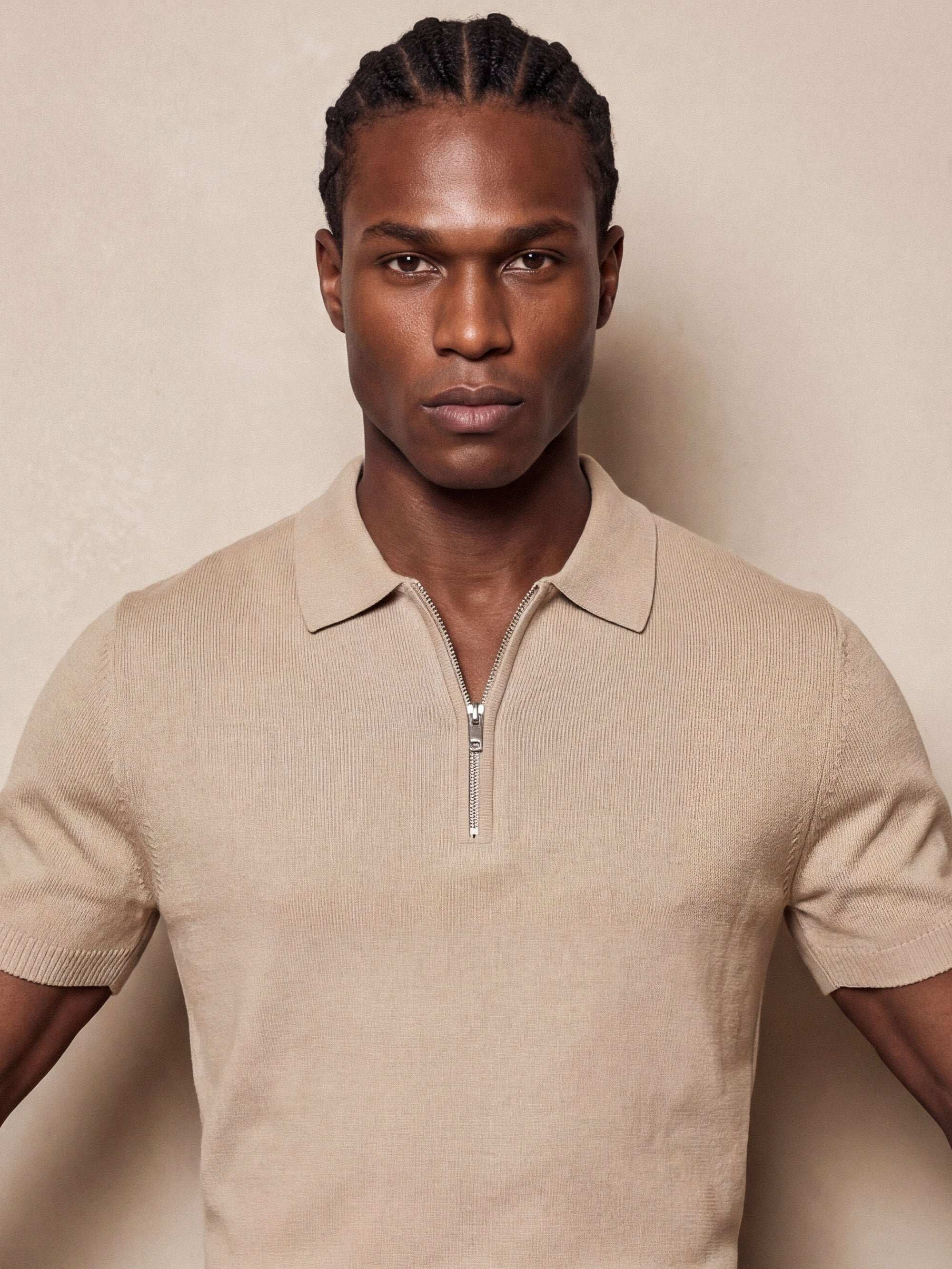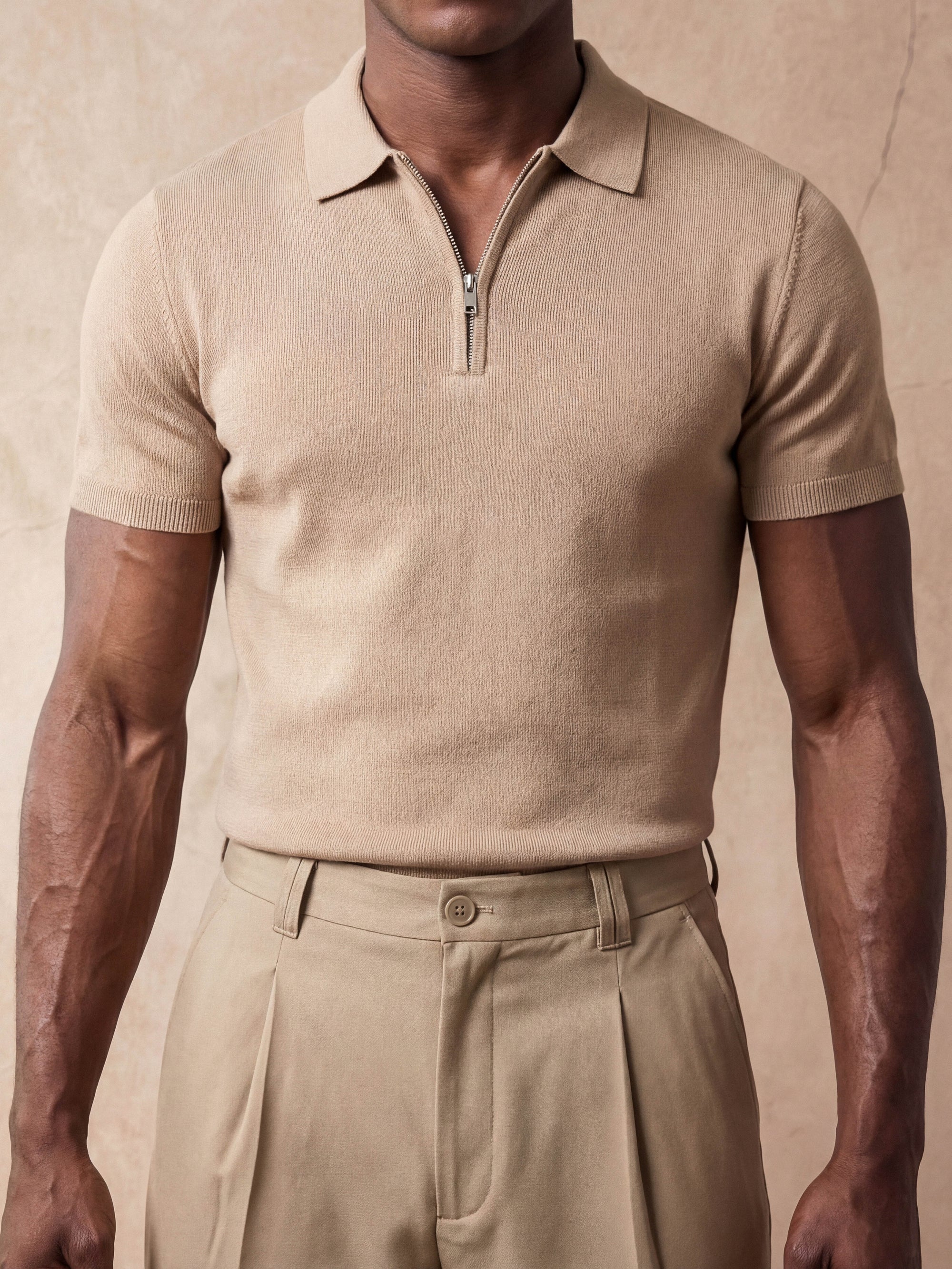 Half-Zip Knit Polo | Beige