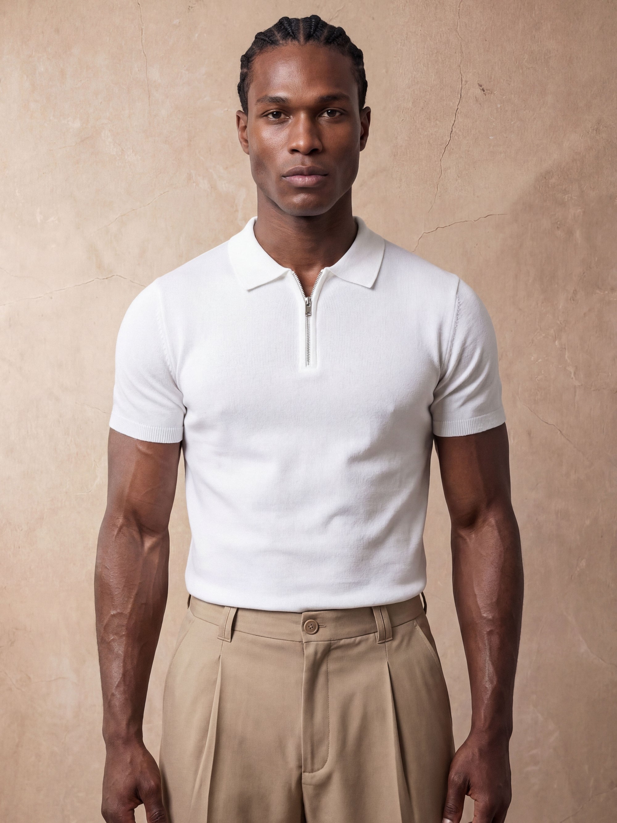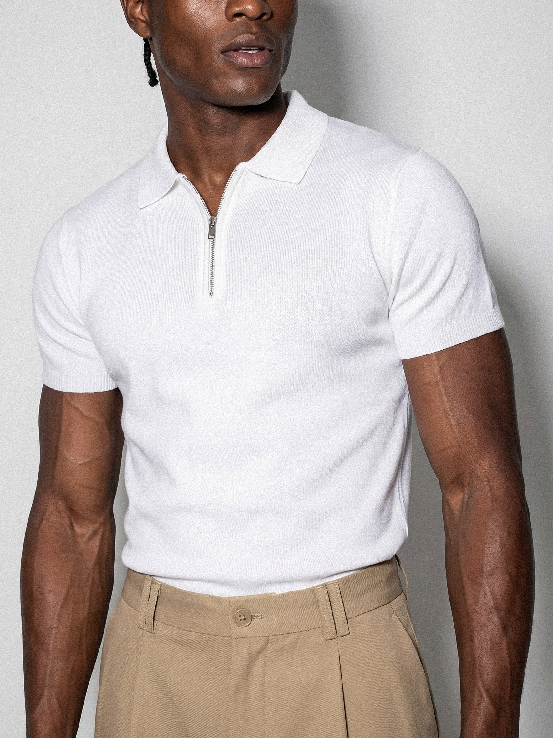 Half-Zip Knit Polo | White