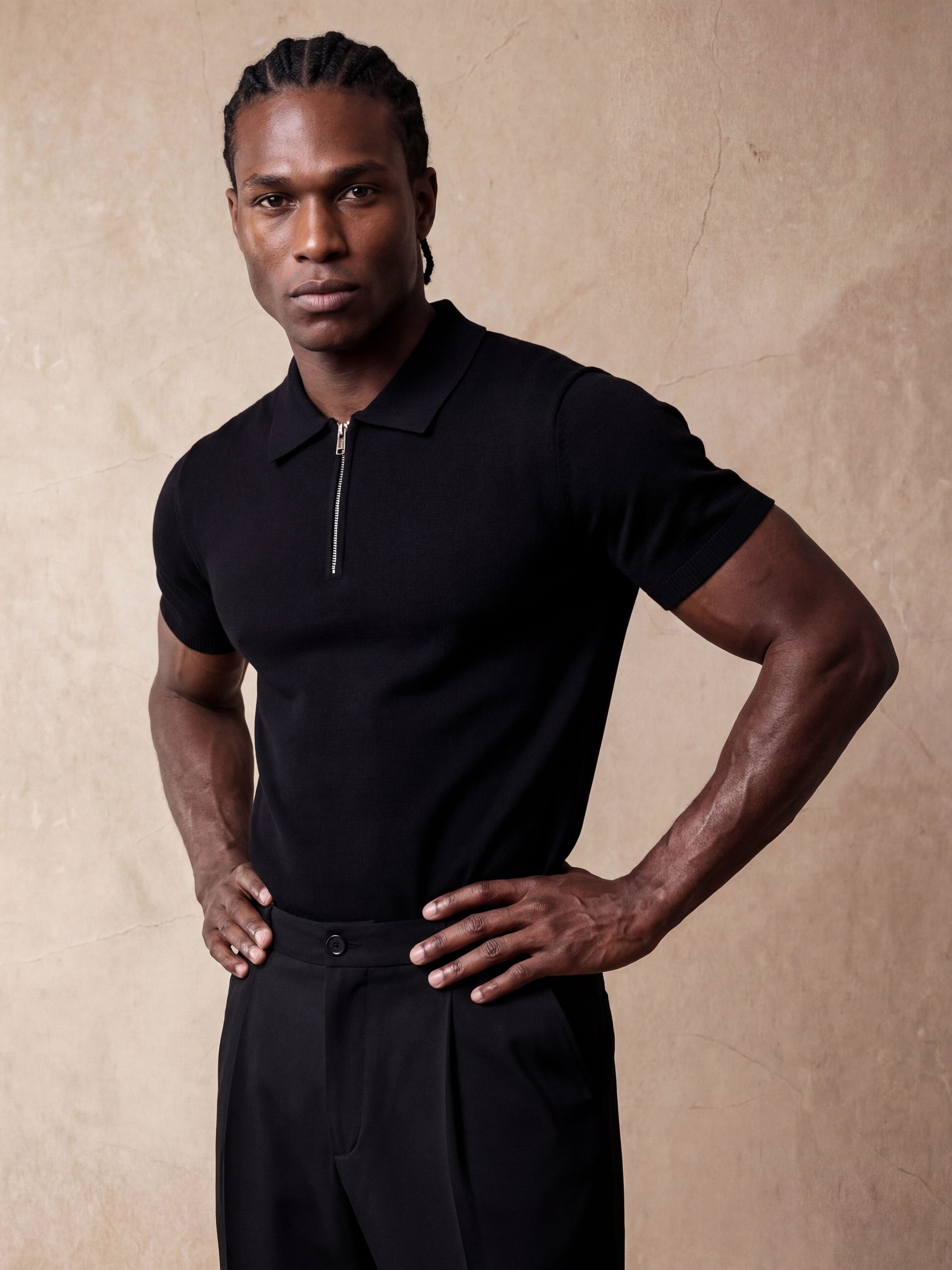 Half-Zip Knit Polo | Black