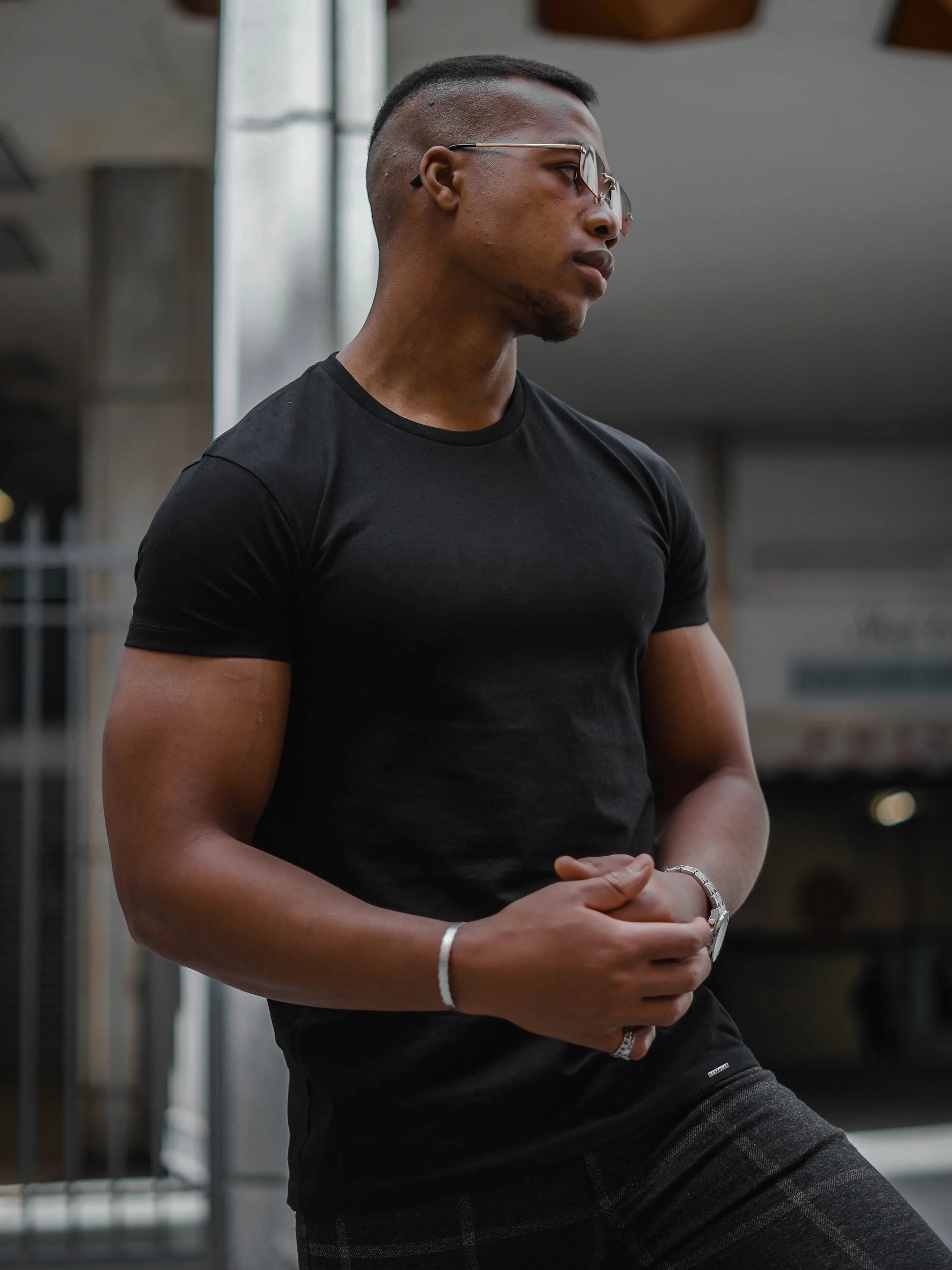 BASIC SLIM-FIT T-SHIRT 4-BUNDLE | Black-4
