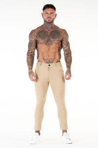 - Pantalón en color Caqui elegante con un diseño moderno y estilo liso.